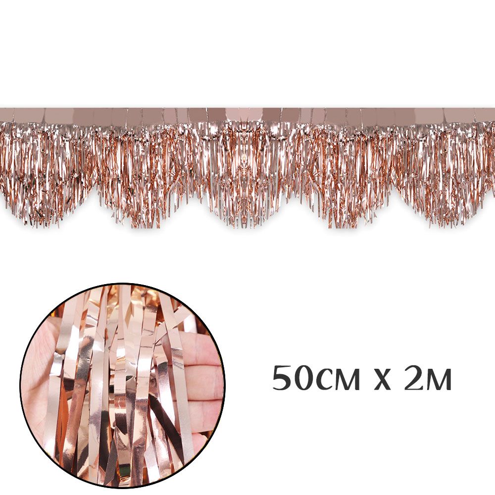 Занавес Дождик бахрома 50 см х 2 м, металлик розовое золото