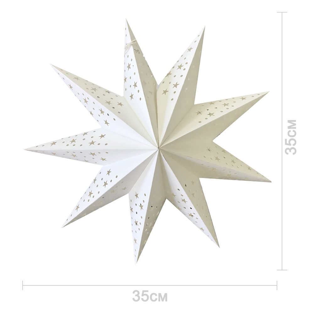Звезда девятиконечная 35 см, точки и звездочки, белый