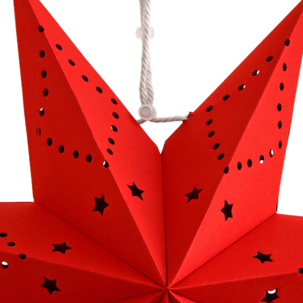 Аккуратно расправьте лучи, чтобы придать звезде идеальную объемную форму, затем зафиксируйте встроенным шнуром для подвеса.